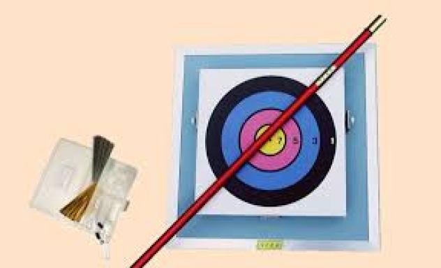 上級者は10mの距離から直径24cmの的を狙いますが、初心者はもう少し短い距離で的を狙います。
